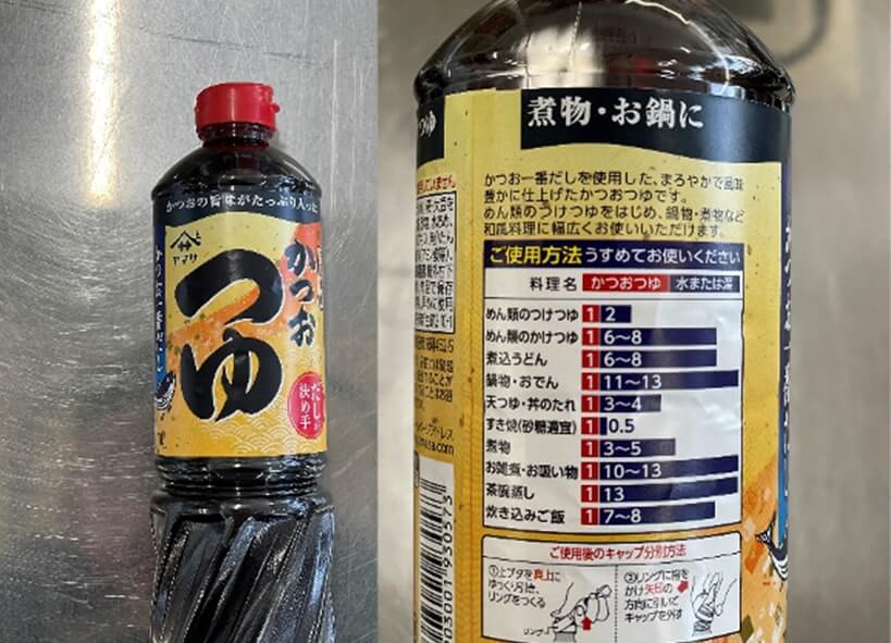 今回は、スーパーで手に入るヤマサのかつおつゆ 3倍濃縮を準備しました。