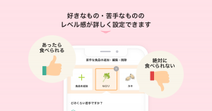 CAN EAT上では、食品プロフィールに「食事制限」「好き」「苦手」の3つの項目を登録できます。食物アレルギーがある場合は専用調理器具の使用が必要かどうか、加熱すれば食べられるかどうかといった、詳しい情報まで共有できます。