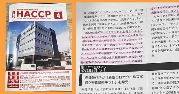 食の安全と品質保証のための業界紙『月刊HACCP』4月号にて、弊社の取り組みが掲載されています。