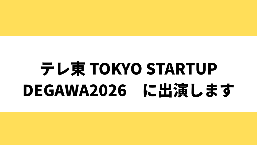 2026年1月12日(月・祝)放送のテレビ東京(関東ローカル)番組 「TOKYO STARTUP DEGAWA 2026 Road to SusHi Tech TOKYO」 に出演いたします。